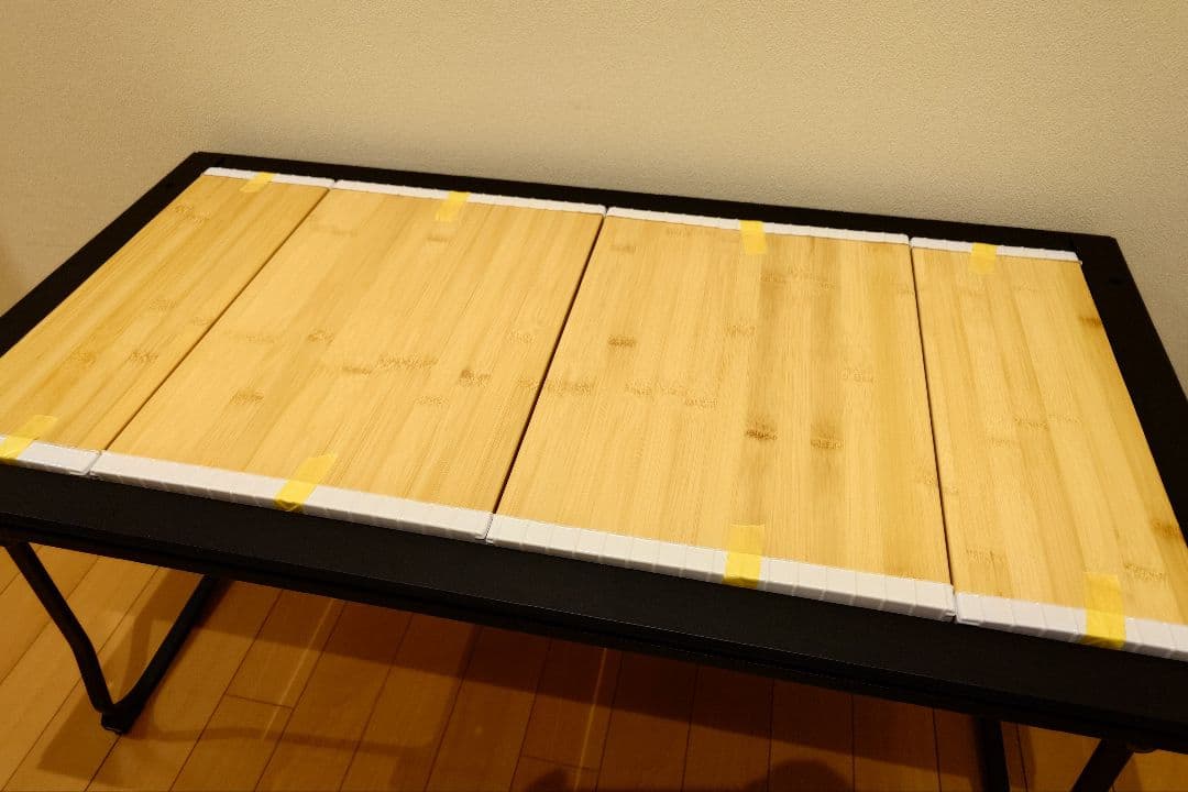 [値段交渉不可]■商品■テーブル、収納ケース、元箱おまけでテーブルクロスに使用できるラグをお付けします。■商品の状態■・中古品になります。・無ペット、無喫煙で使用していました。・数回キャンプで使用しました。(マット上にて使用したので脚裏は綺麗です)・掲載写真は、使用、キズの確認、清掃等の後に撮影したものです。(2026年1月)◎裏面に展開時に使用するストッパーの擦り跡が薄くあります。脚部分に気になる点はありません。⚠︎テーブル面の周囲に貼ってあるカバーテープ部分(合わさる部分になる中央部分)が熱でヨレてしまいました。⚠︎カバーテープ部分の切れた端角や剥がれた部分に注意してください)※商品の詳細については掲載写真でご確認下さい。※使用機会が減ったので、断捨離の為出品します。■商品概要■・高さ:3段階調整機能付き・使用時サイズ:約70×90×70/60/44cm・収納時サイズ:約36×90×9cm・重量:約5.1kg・材質:天板/メラミン樹脂、グラスファイバー、ポリプロピレン フレーム/アルミニウム、他・耐荷重:約30kg※正しくは、公式サイト等で再度ご確認ください。■配送方法■・佐川急便/日本郵便の宅急便100サイズで発送する予定です。※外箱のまま梱包して発送致します、ご了承ください。・発送は設定期日内になります。※自宅保管の為、神経質な方のご購入はお控え下さい。※小さな汚れや小傷等ある場合が御座います。※状態は写真でご判断し、ご納得頂いた方のみご購入下さい。