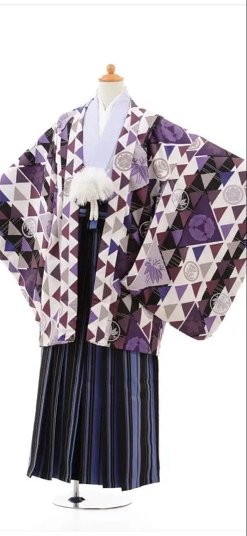 ・5歳男の子用の着物・羽織(中古品)袴のセットです。着物の裄丈が羽織より多少短く肩揚げ加工されております。ご注意下さい。\r\r・以前、レンタルショップ(貸衣装店)にて使用されていた商品です。\r\r・中古品ですのでご了承の上、ご購入お願いします。\r\r・こちらのセット内容以外に必要なアイテムは★長襦袢・角帯・懐剣・お守り・羽織袴・扇子・雪駄・足袋です。★を揃えるとすべてのアイテムが揃うフルセットとなります。\r\r・七五三の着物として、リメイク用の素材としてもご使用頂けます。\r\r【素 材】\rポリエステル等\r\r【セット内容】\r①着物②羽織③袴\r\r【サイズ】\r着物身丈 約58cm 裄丈 約47cm(5cm) 袖丈 約48cm 羽織丈 約58cm 袴丈 約57cm\r※揚げ加工されております。揚げ加工を解けは( )のサイズ分長くなります。\r\r※検品しておりますが、見つけられなかった汚れ等の箇所がある場合もございます。ご了承の上ご購入お願いします。