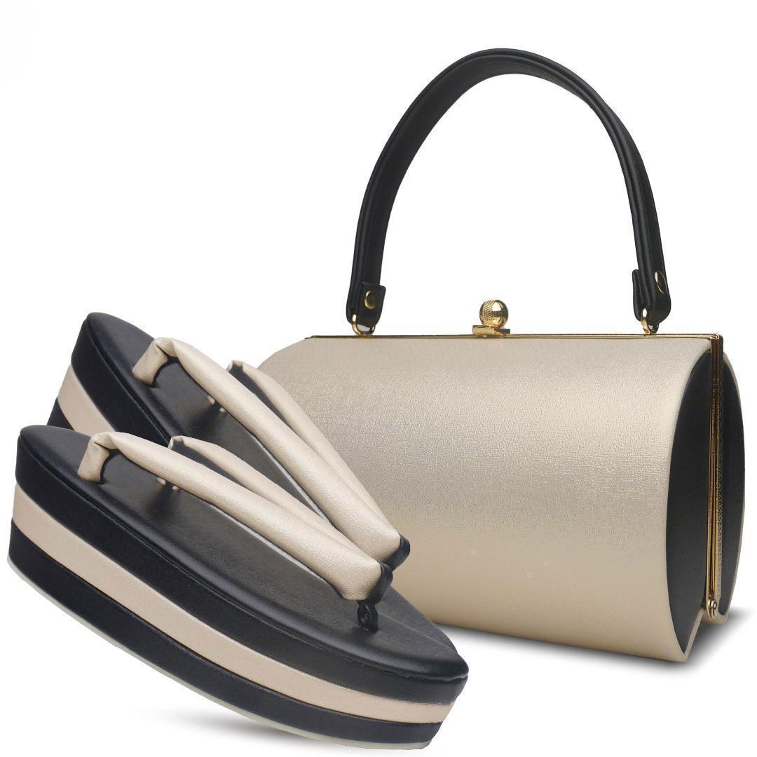 和装草履とバッグセット SOUBIEN(創美苑) 草履バッグセット 成人式 振袖 厚底 盛装 黒 白 金